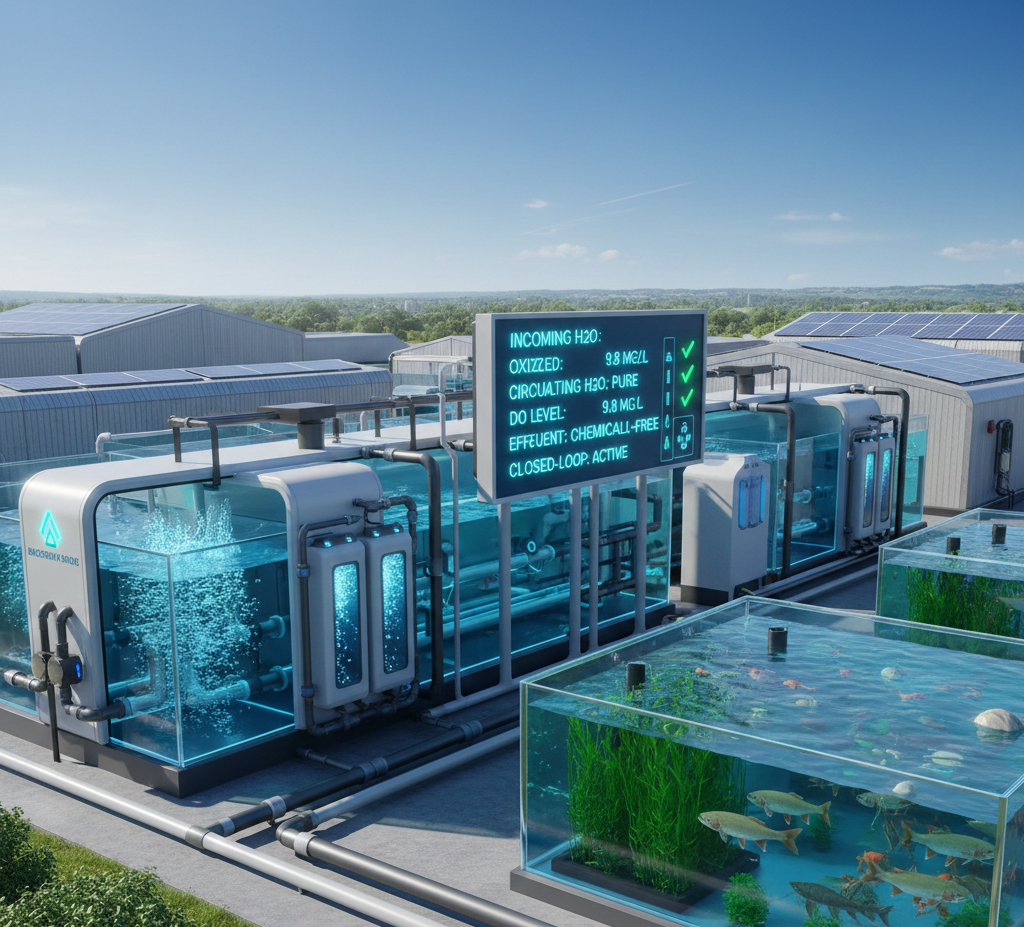 Our technology provides intensive oxidation of incoming water and efficient purification of circulating farm water. We ensure optimal dissolved oxygen levels for healthy stock and chemically-free treatment of effluent prior to discharge.